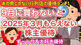 投資【お金返して!】【必見】9月に買わないと2025年3月にもらえない株主優待!あの県にしかない行列店で優待ランチ!ずっしり&大好き優待! 【必見】9月に買わないと2025年3月にもらえない株主優待!あの県にしかない行列店で優待ランチ!ずっしり&大好き優待!は凄いですよね、、、株式優待の情報について語っているオススメのユーチューバー。 前はブランドのレンタルの情報を整理し... 2024.09.19投資