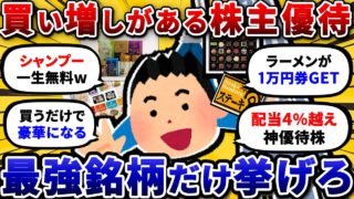 投資【お金返して!】【2chお金スレ】買い増しすると豪華になる、おすすめ株主優待銘柄を挙げてけ。優待生活したいやつはガチホ必須w【2ch投資スレ】 【2chお金スレ】買い増しすると豪華になる、おすすめ株主優待銘柄を挙げてけ。優待生活したいやつはガチホ必須w【2ch投資スレ】は凄いですよね、、、株式優待の情報について語っているオススメのユーチューバー。 前はブランドのレンタルの情報... 2025.10.06投資