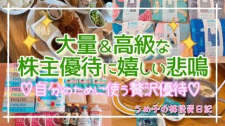 投資【お金返して!】大量優待届いて嬉しいけど含み損だから買い増ししたい!高級優待は自分のために使う! 大量優待届いて嬉しいけど含み損だから買い増ししたい!高級優待は自分のために使う!は凄いですよね、、、株式優待の情報について語っているオススメのユーチューバー。 前はブランドのレンタルの情報を整理していましたが、儲かって無さそうなので辞... 2025.09.20投資