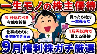 投資【お金返して!】【2chお金スレ】9月権利確定のおすすめ株主優待銘柄を挙げていけ!買ったら一生ホールドしとけw【2ch投資スレ】 【2chお金スレ】9月権利確定のおすすめ株主優待銘柄を挙げていけ!買ったら一生ホールドしとけw【2ch投資スレ】は凄いですよね、、、株式優待の情報について語っているオススメのユーチューバー。 前はブランドのレンタルの情報を整理していま... 2025.08.02投資