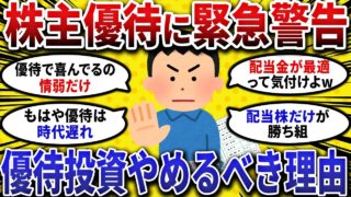 投資【お金返して!】【2chお金スレ】株主優待に緊急警告!! 高配当 VS 株主優待【 2ch 有益スレ】 【2chお金スレ】株主優待に緊急警告!! 高配当 VS 株主優待【 2ch 有益スレ】は凄いですよね、、、株式優待の情報について語っているオススメのユーチューバー。 前はブランドのレンタルの情報を整理していましたが、儲かって無さそうな... 2025.07.25投資