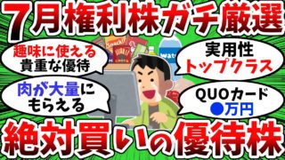 【お金返して!】【2chお金スレ】7月権利確定のおすすめ株主優待を挙げていけ! これ買うだけで株主優待生活できるわww【2ch有益スレ】