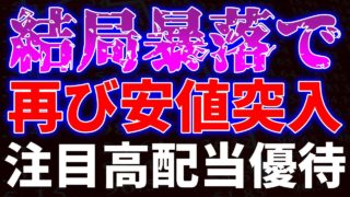 【お金返して!】結局暴落で再び安値突入!注目高配当優待銘柄