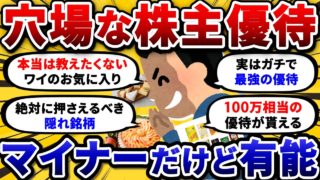 【株主優待】全て知ってたら優待ガチ勢!隠れたオススメ株主優待銘柄挙げてけ【2chお金スレ・2ちゃんねる有益スレ・ゆっくり解説・新NISA・S&P500・米国株・投資信託・おすすめ銘柄・桐谷さん】は凄いですよね、、、株式優待の情報について語っ...