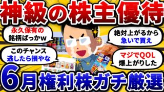 【2chお金スレ】6月権利確定のおすすめ株主優待銘柄を挙げていけ! 永久保有必須だから急いで買っとけw【2ch有益スレ】は凄いですよね、、、株式優待の情報について語っているオススメのユーチューバー。 前はブランドのレンタルの情報を整理...