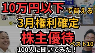投資【お金返して!】【10万以下×3月優待】今買うべき!10万円以下で買える3月権利確定のイチオシ優待銘柄、100人に聞いてみた!配当4%や総合利回り10%超も!株価急落で仕込み時到来!? 【10万以下×3月優待】今買うべき!10万円以下で買える3月権利確定のイチオシ優待銘柄、100人に聞いてみた!配当4%や総合利回り10%超も!株価急落で仕込み時到来!?は凄いですよね、、、株式優待の情報について語っているオススメのユーチュー... 2025.03.20投資