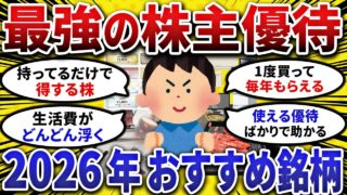 投資【お金返して!】【2chお金スレ】 2026年 最強の 株主優待 !長期保有で人生が激変する銘柄挙げてけ!!【 2ch 有益スレ 】 【2chお金スレ】 2026年 最強の 株主優待 !長期保有で人生が激変する銘柄挙げてけ!!【 2ch 有益スレ 】は凄いですよね、、、株式優待の情報について語っているオススメのユーチューバー。 前はブランドのレンタルの情報を整理して... 2025.11.27投資