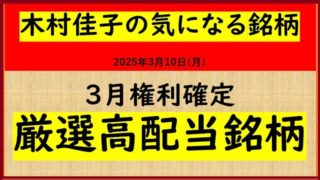 【キレイな佳子さま】厳選! 3月確定/高配当銘柄4選【木村佳子の気になる銘柄】2025年3月10日 (月)